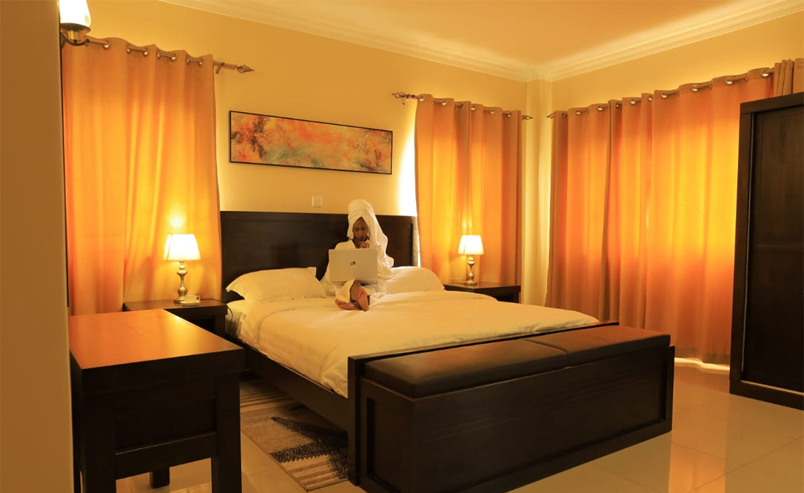 J&L Safari Suites Hotel is a boutique hotel with serene environment where Elegance Meets Comfort. The hotel is strategically located midway Kampala City and Entebbe International airport, its just 15 minutes drive from the airport and sits on Bwebajja hill overlooking the Akright estates and palm golf course.
